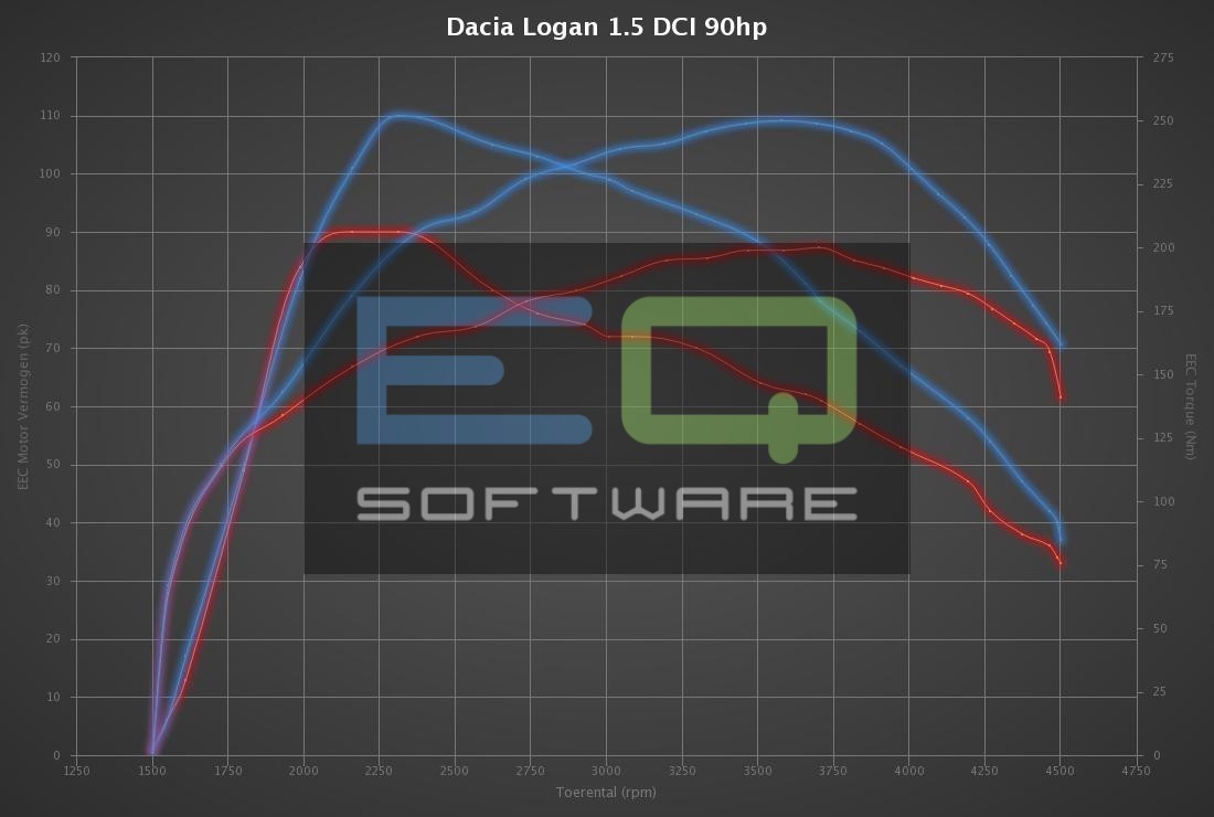 EQ Software is leading in the development of Dacia Logan 1.5 DCI 90hp tuning files. The development of each Dacia Logan 1.5 DCI 90hp tuning file is the result of perfection and dedication by EQ Software programmers. The organization only uses the latest technologies and has many years experience in ECU remapping software. Many (chiptuning) organizations around the globe download their tuning files for Dacia Logan 1.5 DCI 90hp at EQ Software for the best possible result. All Dacia Logan 1.5 DCI 90hp tuning files deliver the best possible performance and results within the safety margins.